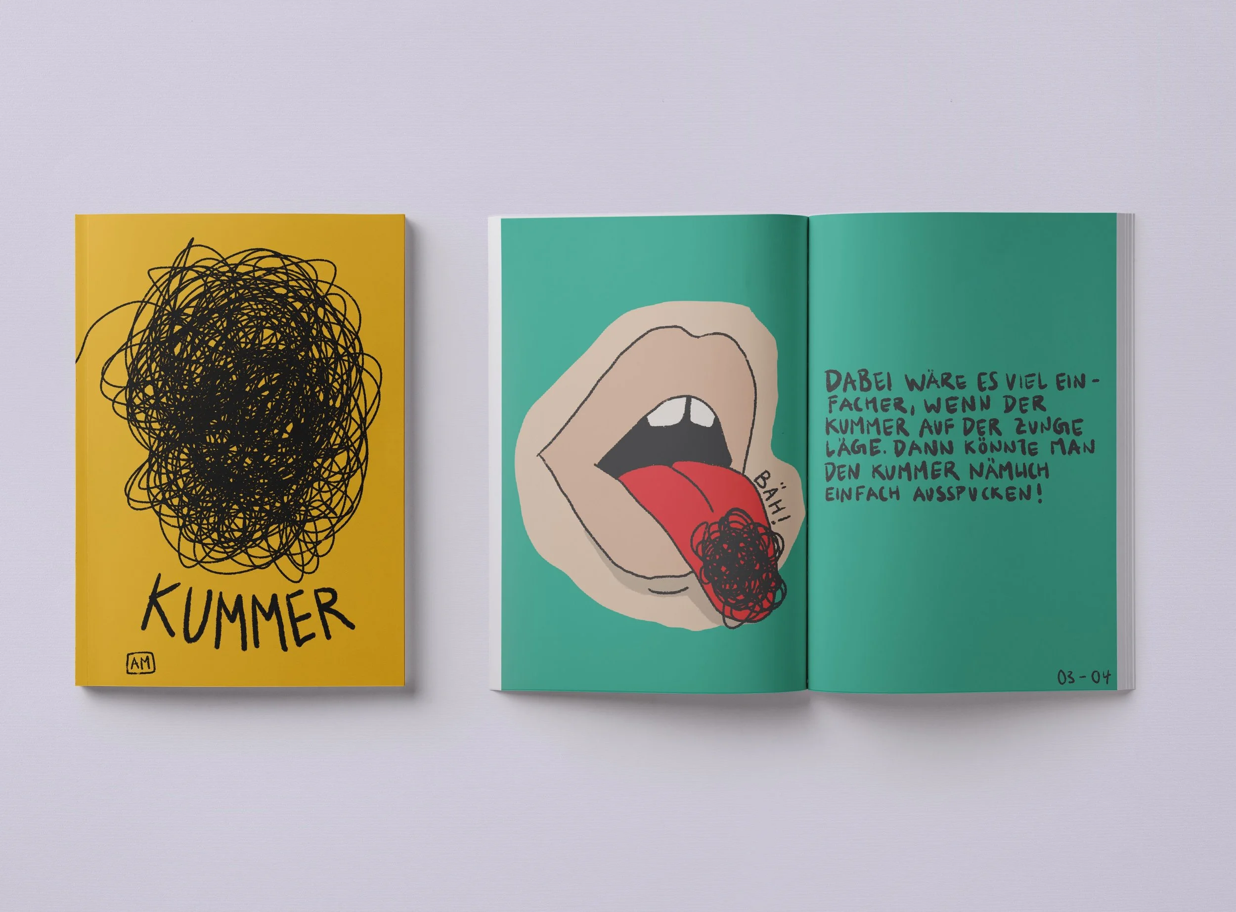 Zine "Ein Leitfaden gegen Kummer" – 2024 // Zine Laserdruck 250mg Strukturpapier, 4 Farben Konzept